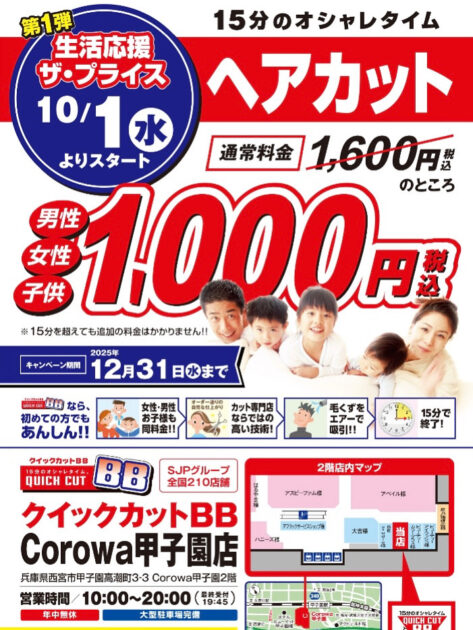 クイックカットBBコロワ甲子園店です